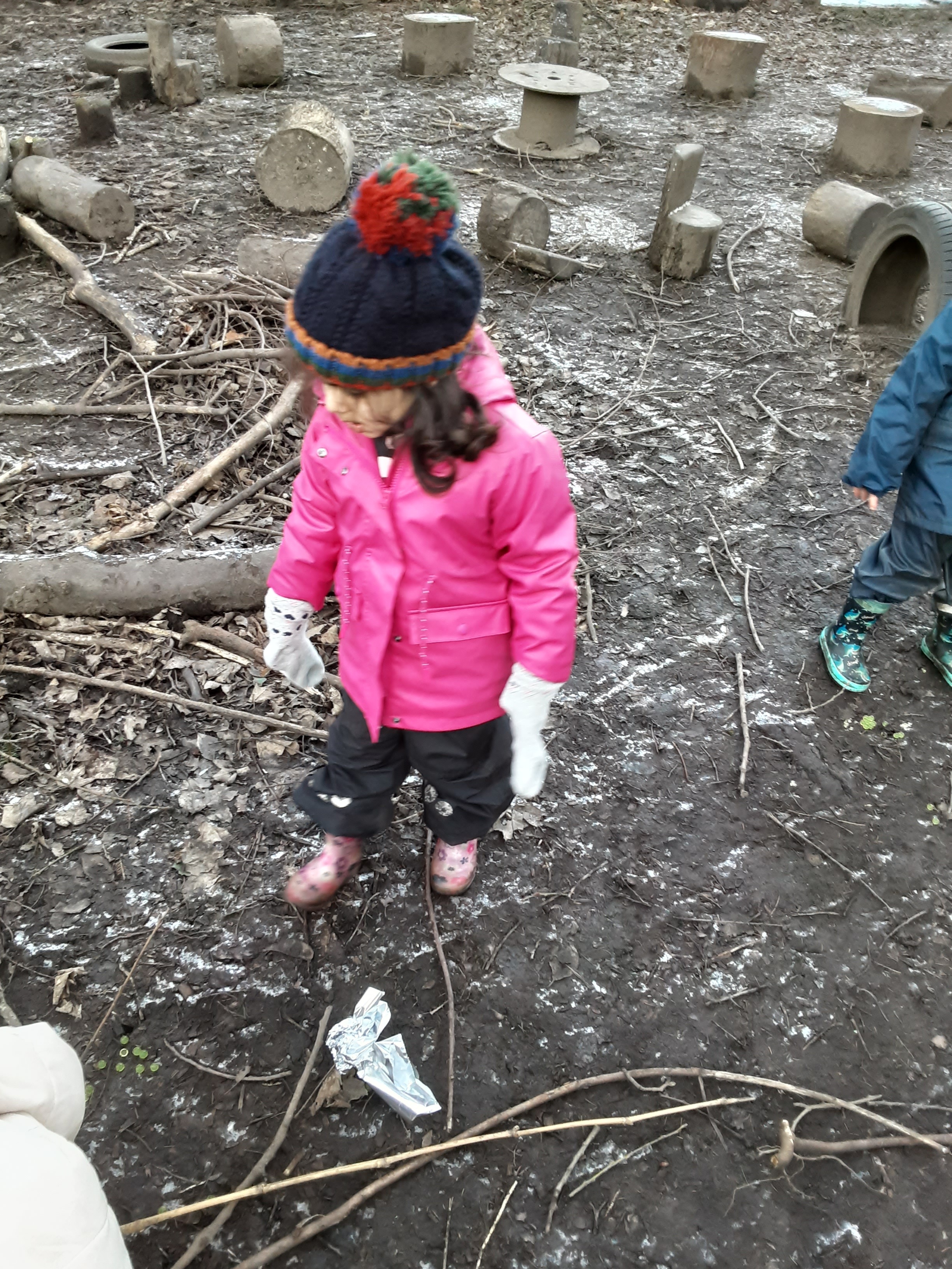 We went into the forest school area and noticed a long green arm from someone who was running away and we found some broken bits of a spaceship on the ground. We went to explore to see what else we could find and we saw a pile of alien eggs on the ground! We couldn’t believe it! When we went exploring further we even found some letters and it was clear to see that the aliens enjoy reading and writing.