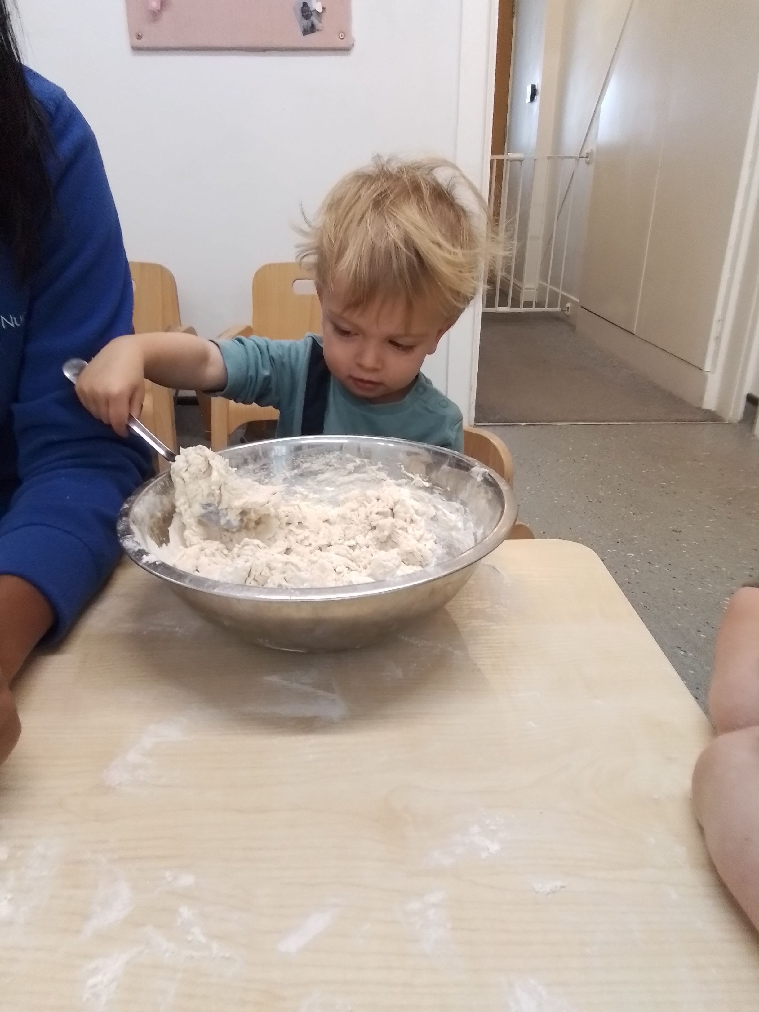 Salt dough inspired autumn leaves – this activity was really enjoyed by the babies who love sensory play. They used lots of fine and gross motor skills to mix up the dough and assemble it into leaves using different tools and media.