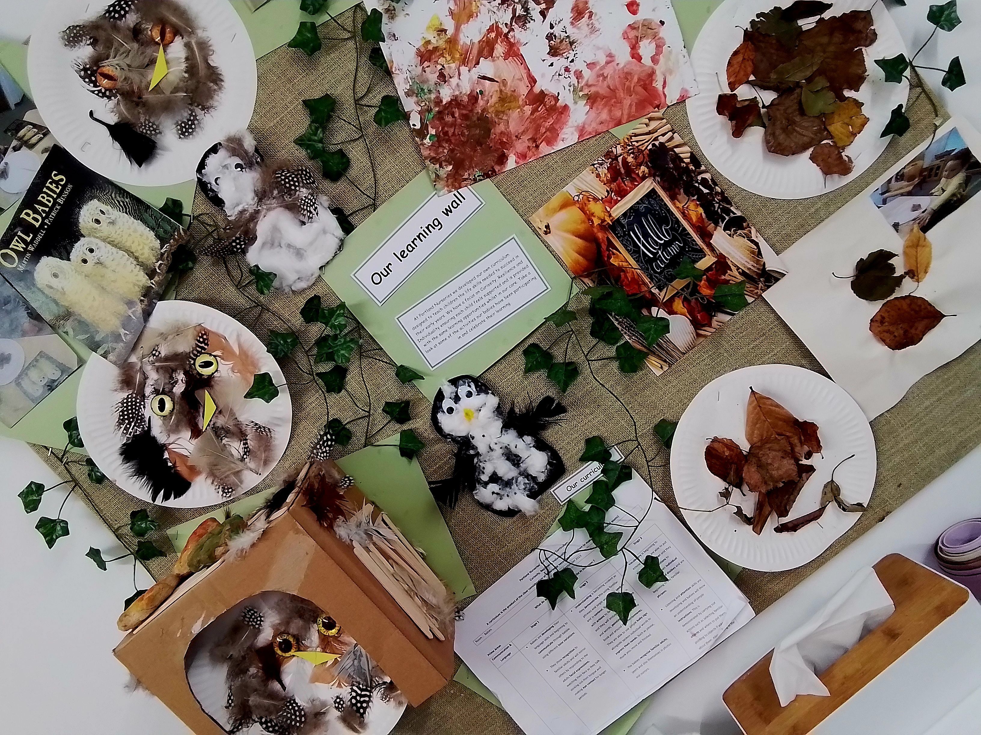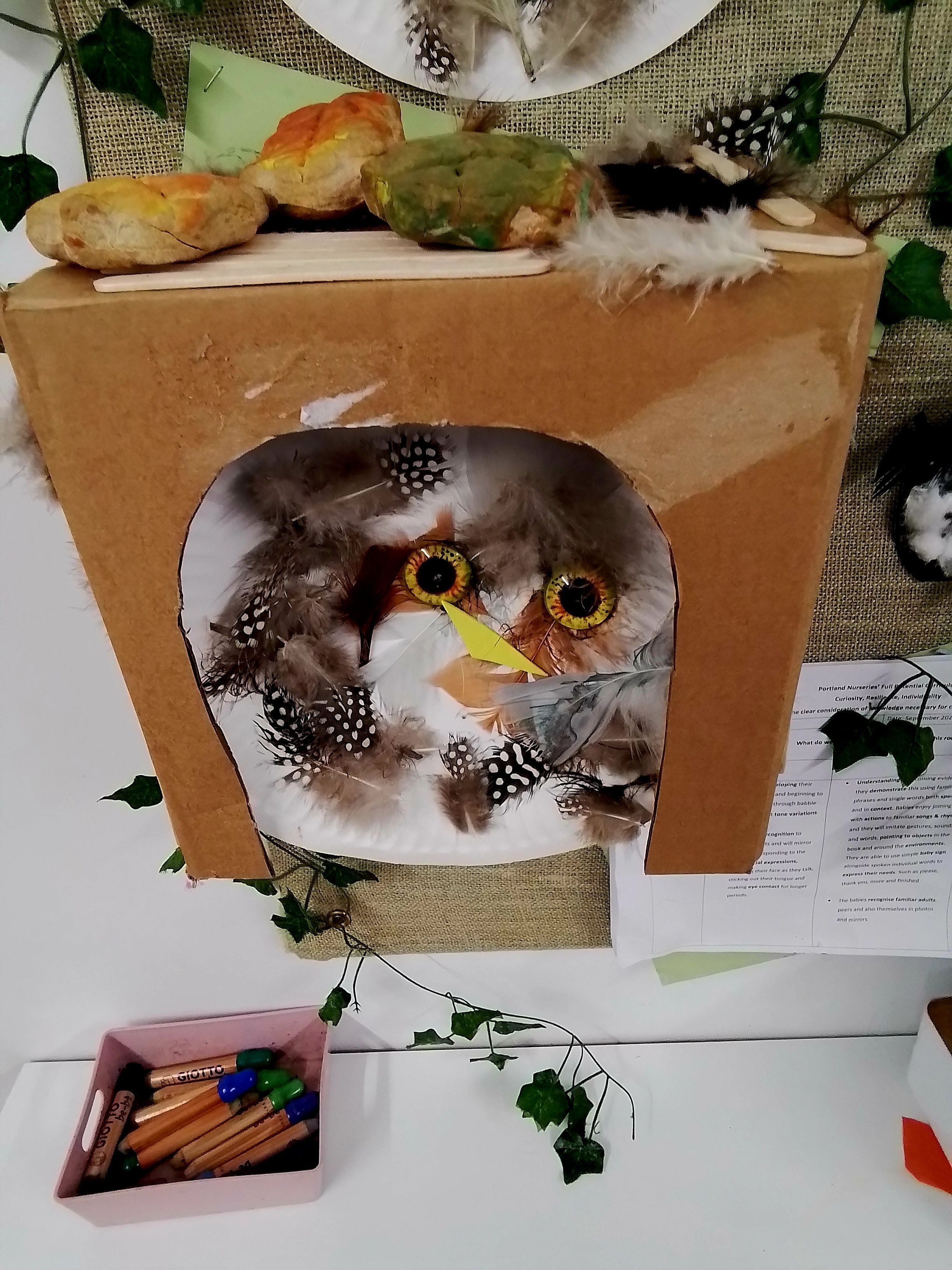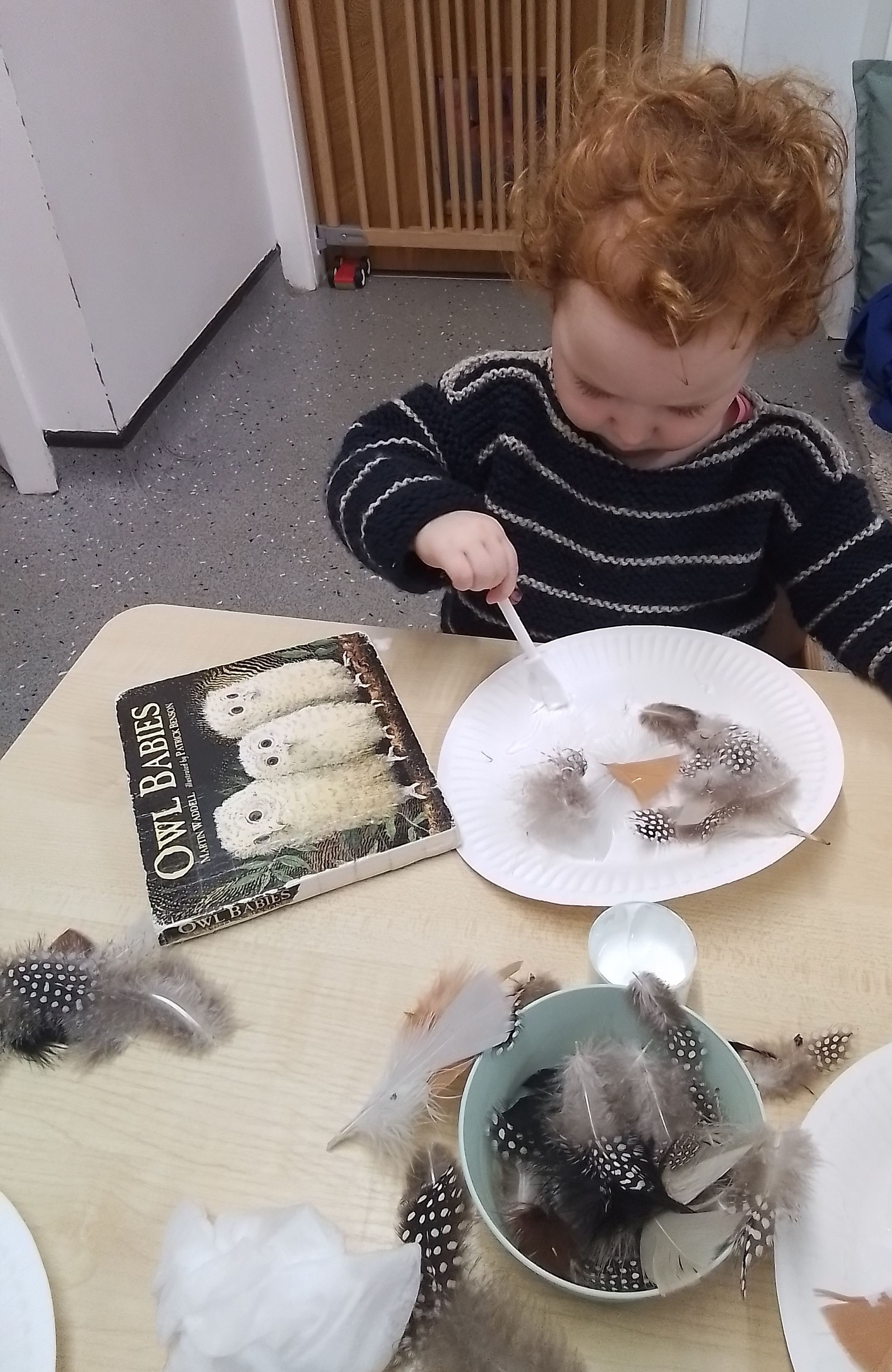 Shortbread autumn cookies - the babies put on their aprons and hats and got mixing and measuring, cooking up some delicious shortbread to take home. In addition to this the babies have also enjoyed looking at the book ‘Owl babies’ by Martin Waddell and Patrick Benson. This book has been accompanied by lots of creative activities such as creating an owl house which the children enjoyed using paper, glue, feathers and lolly sticks to create an amazing house for the owls. We are excited to continue exploring this season looking at how our environment changes around us.