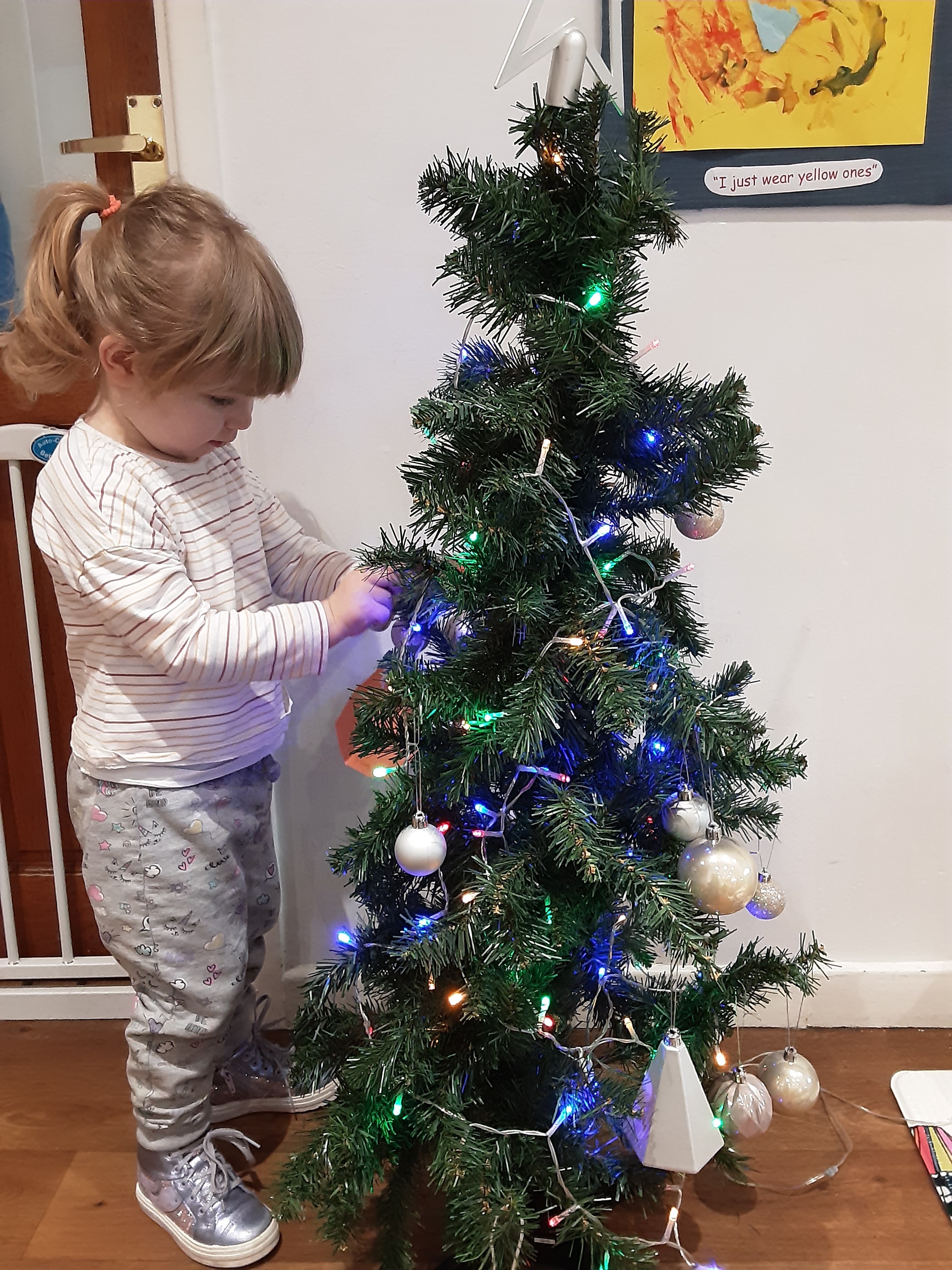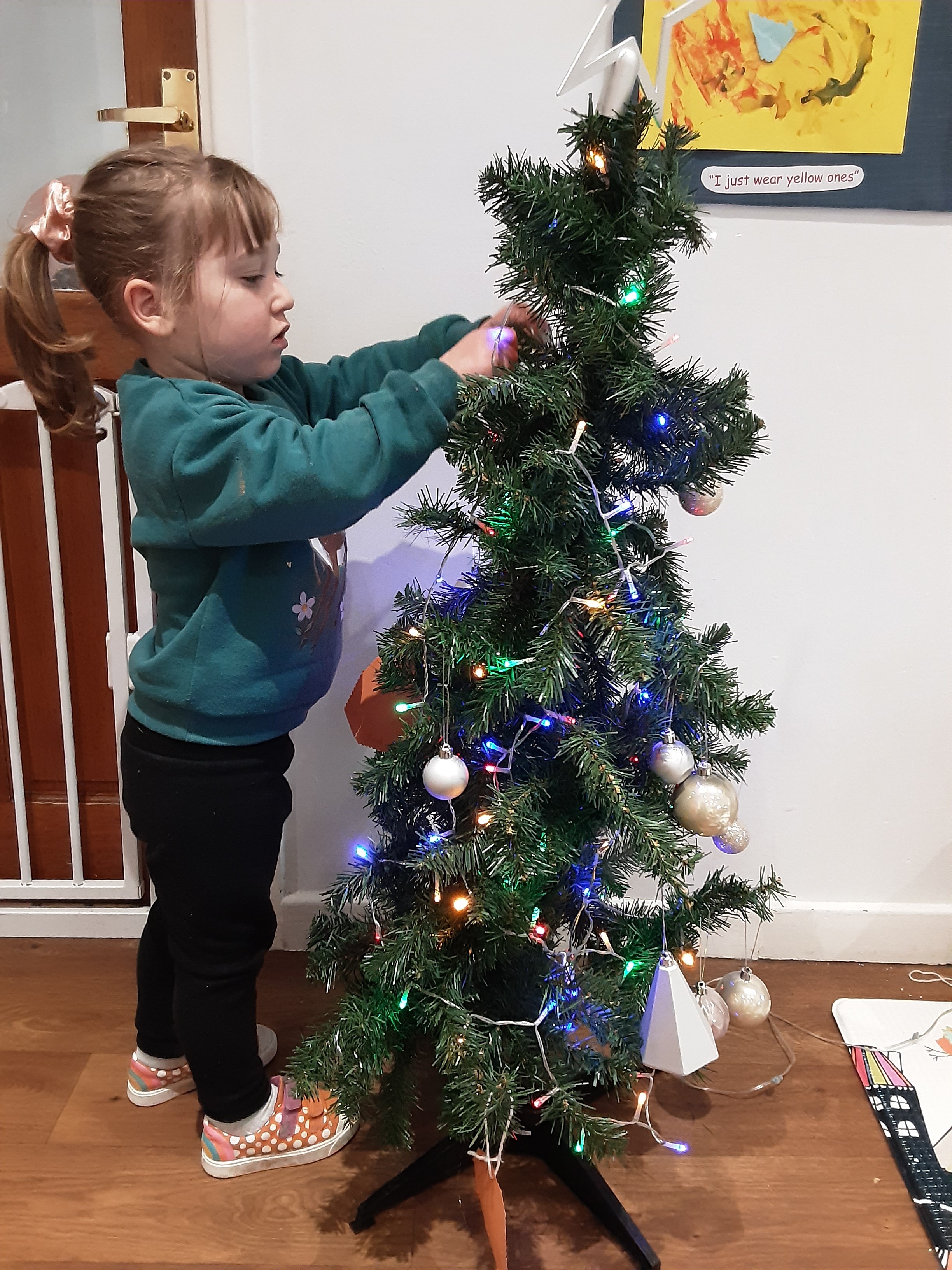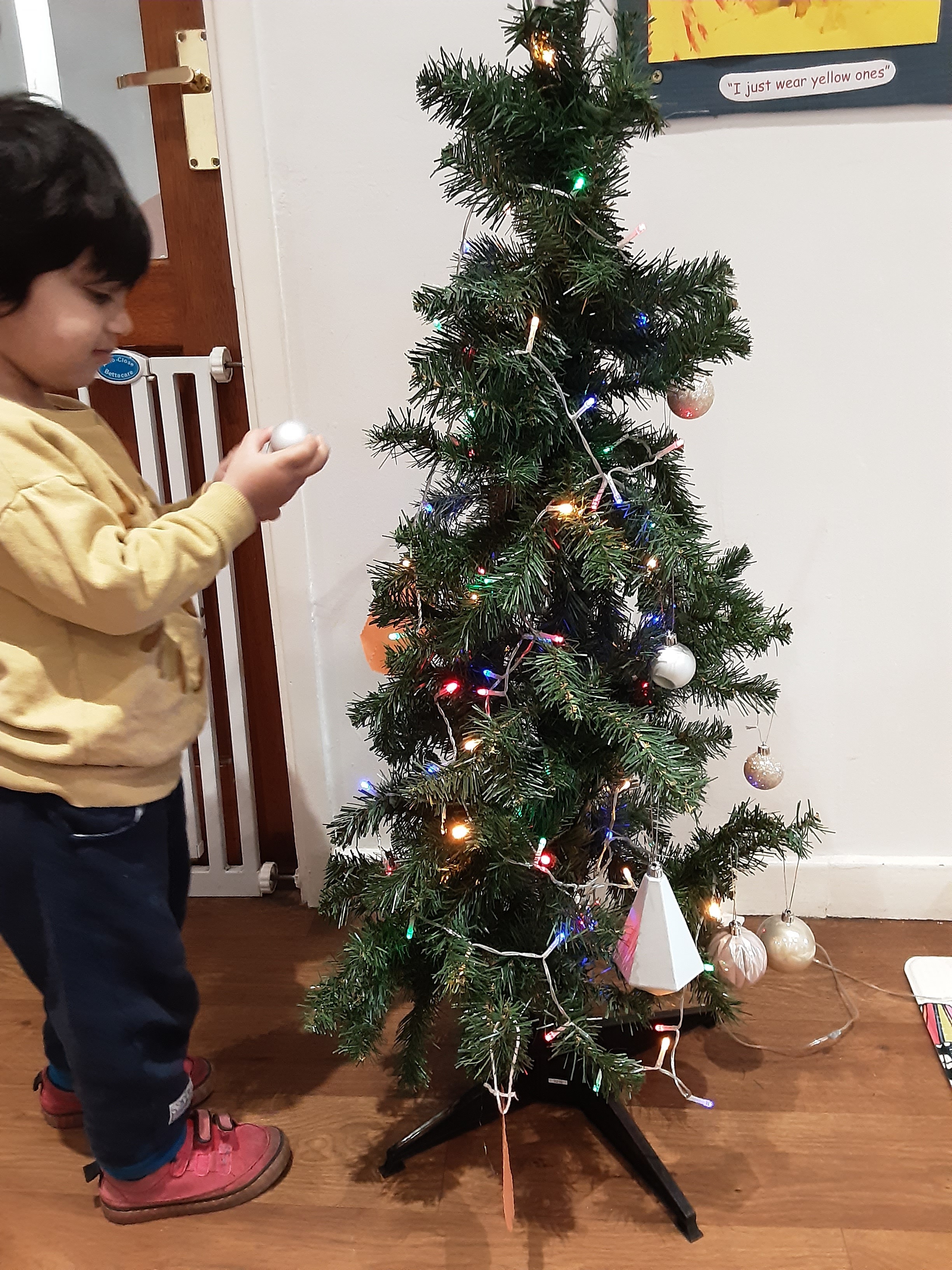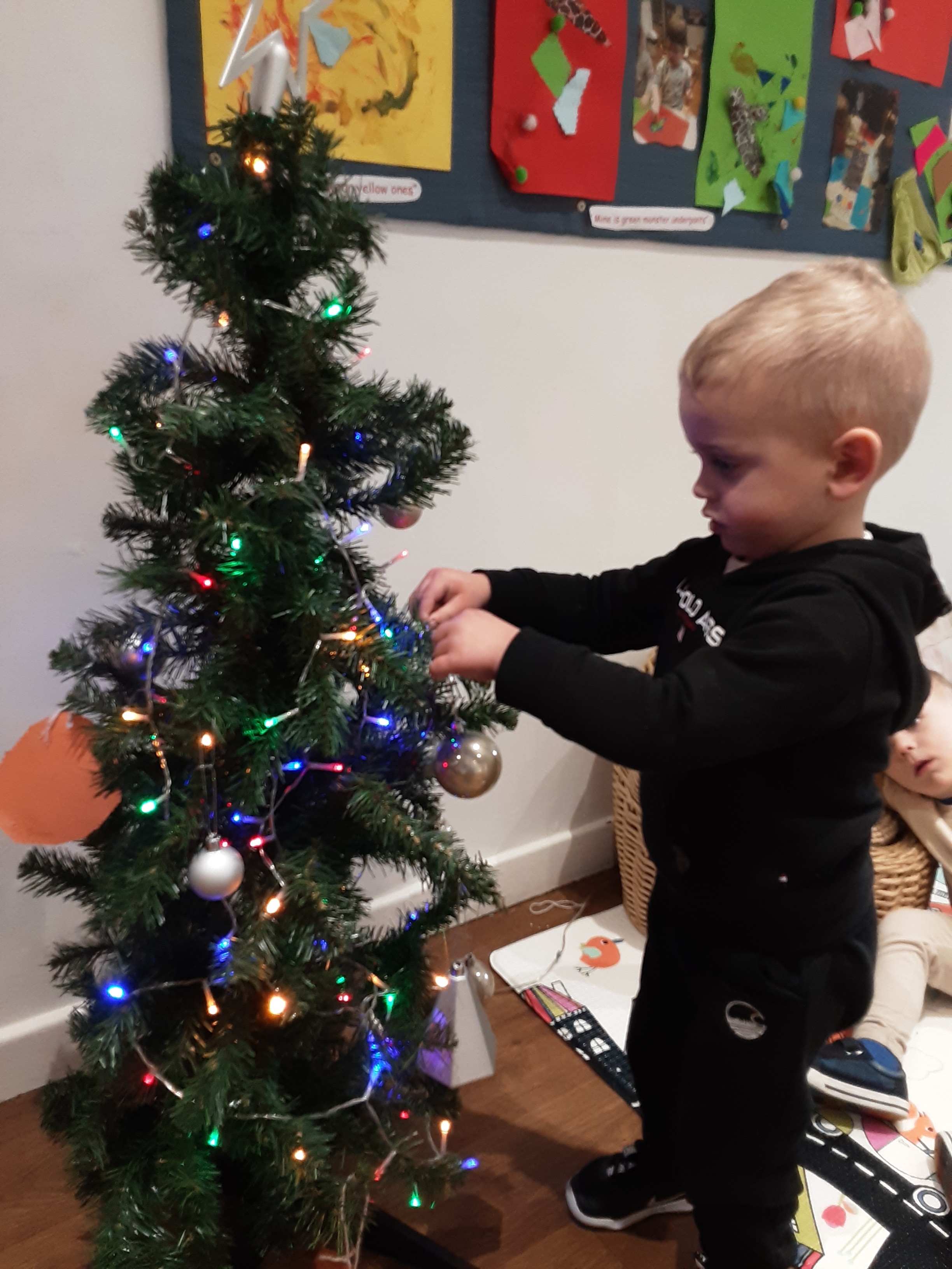 We made lots of decorations for nursery including paperchains that we stuck together ourselves and created our own snowflakes that we stuck on the boards. We have a lovely little Christmas tree in nursery that we have enjoyed decorating with lots of baubles.