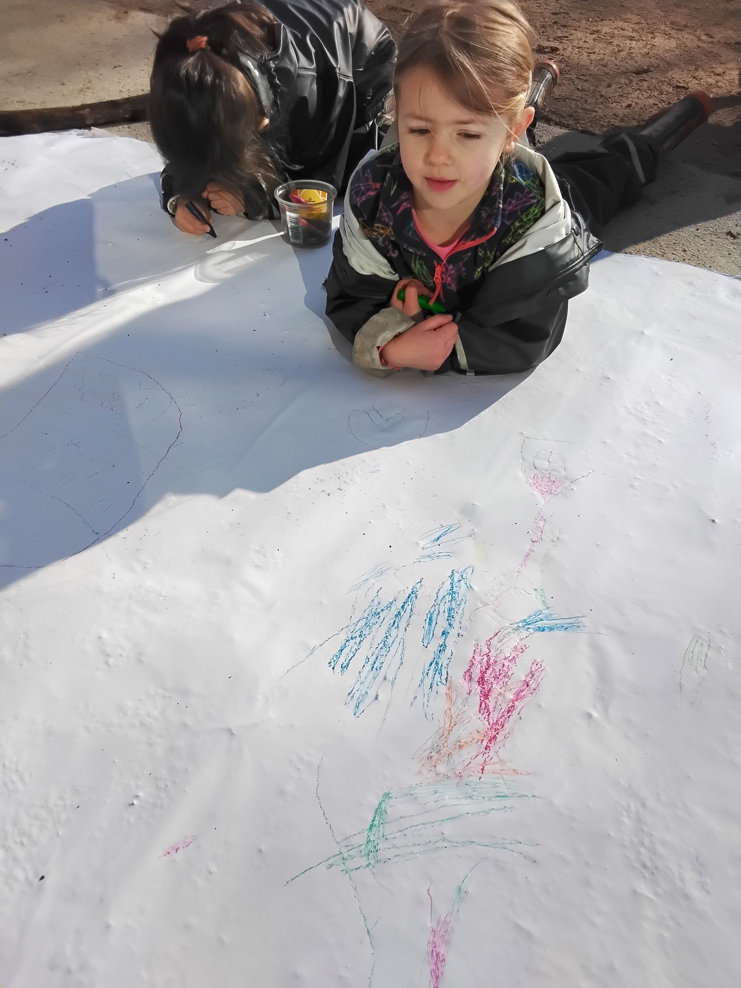 Preschool learned that in March as flowers start to grow and the sun stays out longer, people celebrate by throwing colourful powders and water at each other. Our preschool children enjoyed making their own rainbow by mixing paint and water inside seven cups, and putting napkins stripes on top, to watch the water travelling from cup to cup. Outside, we enjoyed moving ribbons sticks around to make colourful rainbows up in the air. The children also enjoyed drawing colourful rainbows and pictures on a giant paper.