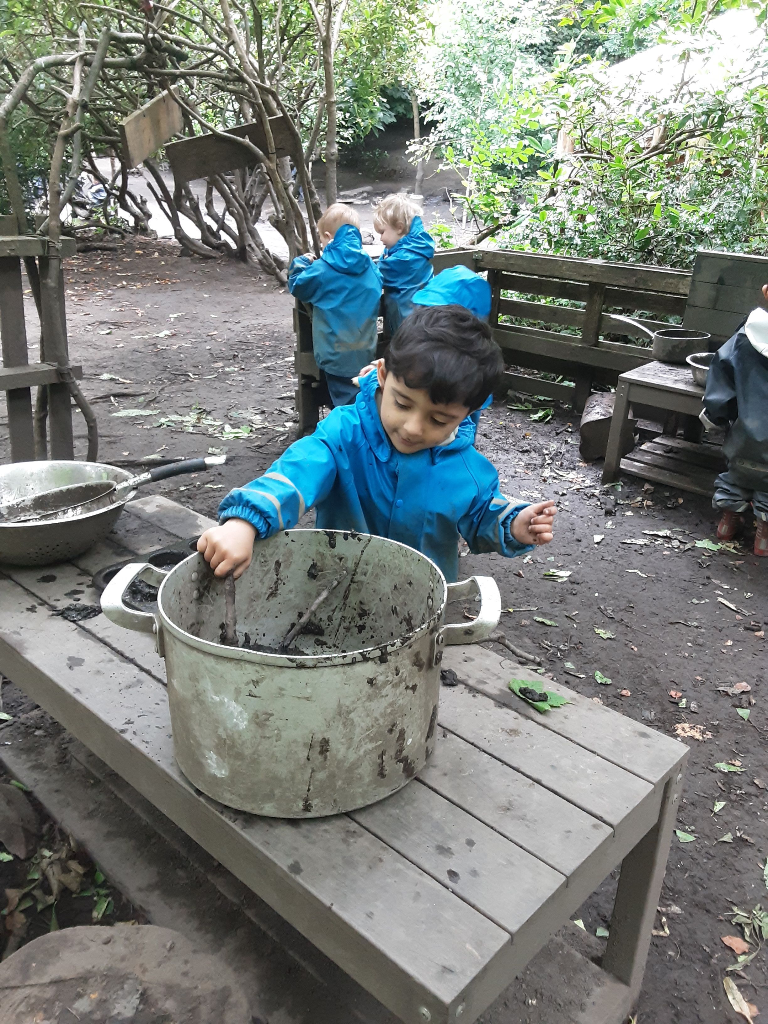 Oakwood House is the perfect environment to celebrate 'International Day of Mud' and the toddlers have been exploring it in lots of different ways. We have been cooking mud pies and cakes in the mud kitchen using our imagination to stir and bake. We found large twigs and branches to mix our muddy ingredients together creating the perfect recipe.