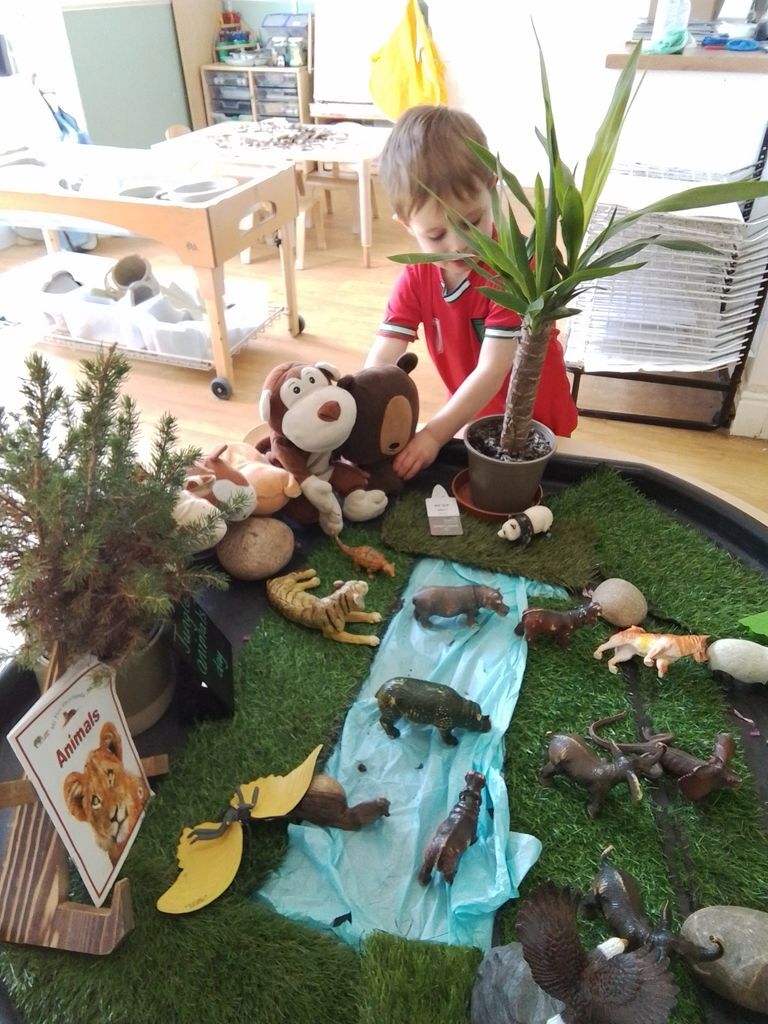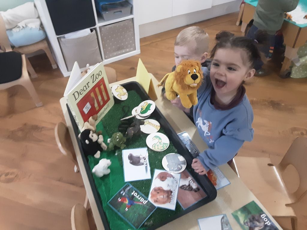 Next, we set up a sensory tray filled with animal figures from dear zoo. The children loved exploring the different zoo animals that had been sent for a pet. It was a sensory experience that not only sparked their imaginations but also helped with their fine motor skills as they manipulated the animals in the tray.