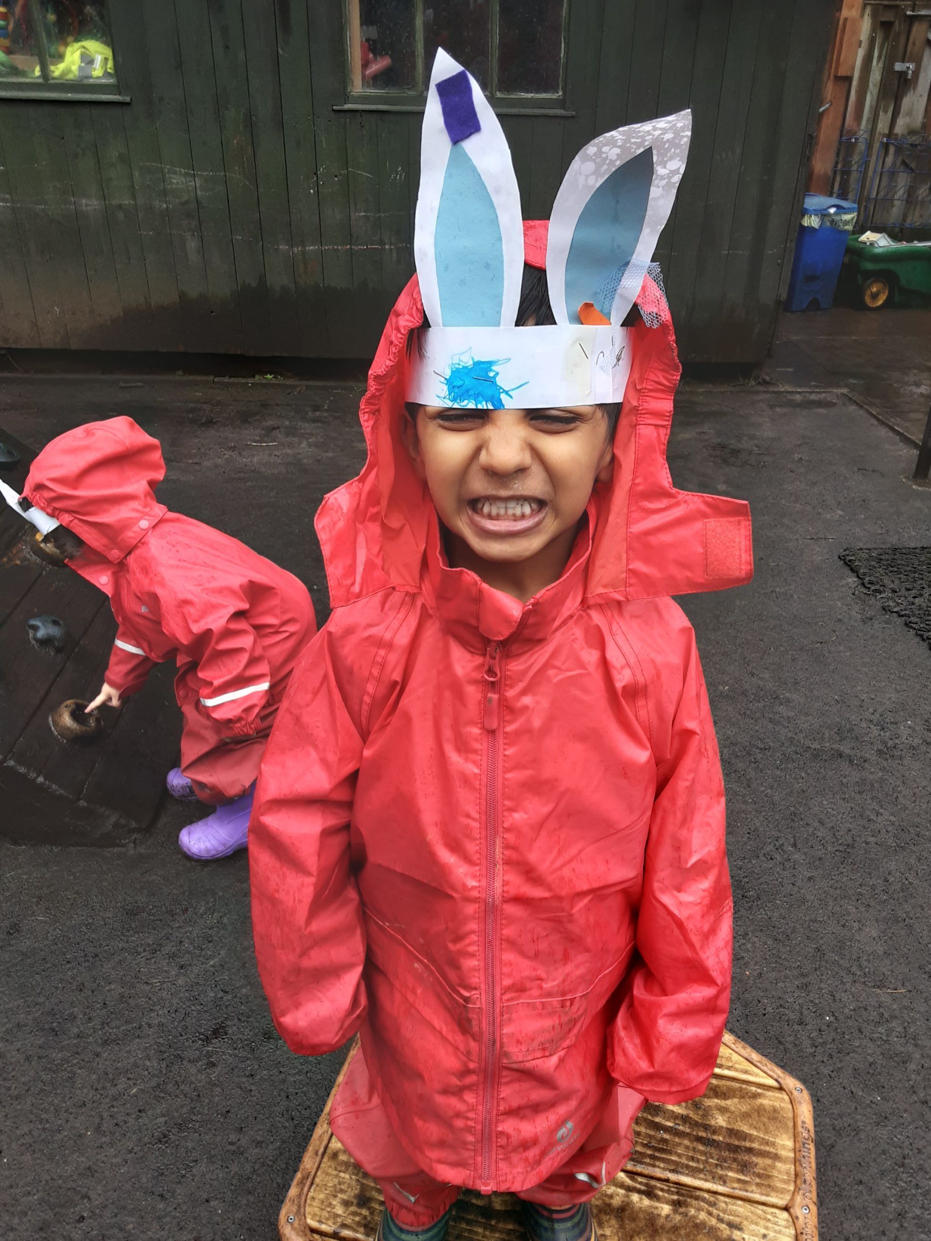 The children at Harlequin had lots of fun taking part in the 'Mad March Hare parade'. We got very creative and made our own bunny headbands to wear during the parade, we used lots of different mark making skills and resources such as paint, crayons, sticking bits etc. The toddlers were very supportive of their friends and cheered each other on as we madly marched around the garden. Great for physical development and our wellbeing!