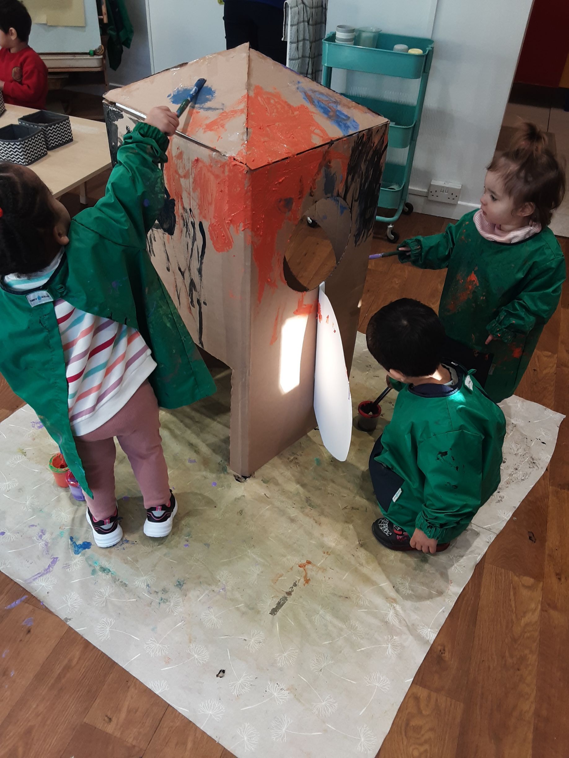 The toddlers and preschool children have been having lots of fun too during our Out of this World Week. We have been learning songs about space, writing stories about our trip to space in a rocket and meeting some friendly aliens and we have even made a giant rocket. We have been painting our rocket and we can’t wait to take it on a trip to space to explore all the planets and stars. We are really looking forward to our dress up day on Friday and can’t wait to see all our fantastic costumes and outfits.