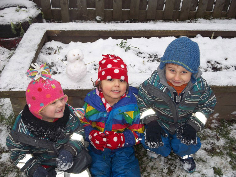 Snow gives unique opportunities for outdoor play and learning. It requires creativity, scientific observation and negotiation skills. Think of the creativity fostered as children build snow creatures and use various objects to decorate them. They learn the complexities of problem solving as they try to mould snow into different designs.