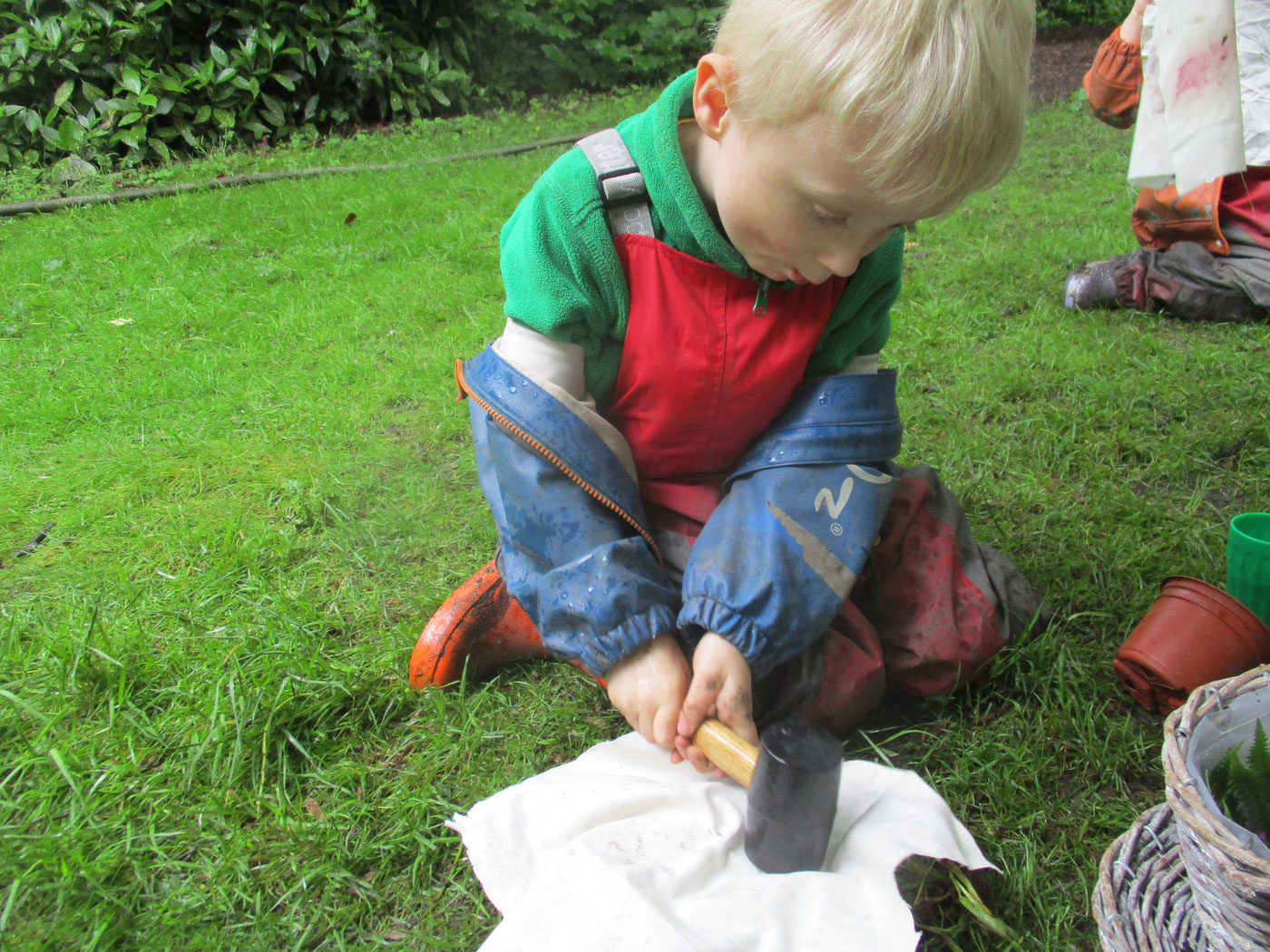 We spoke about numbers and symmetry and the children learnt how to use a mallet safely.