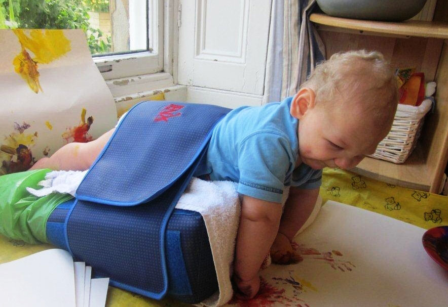 • Create a stimulating floor space for ‘tummy time’ with soft colourful cushions, soft play and gym balls.