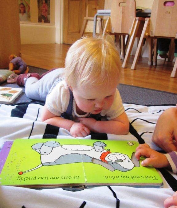 The babies at Portland have been interacting with the staff, playing with instruments, looking at picture books, and even making hand prints with paint on their tummies.