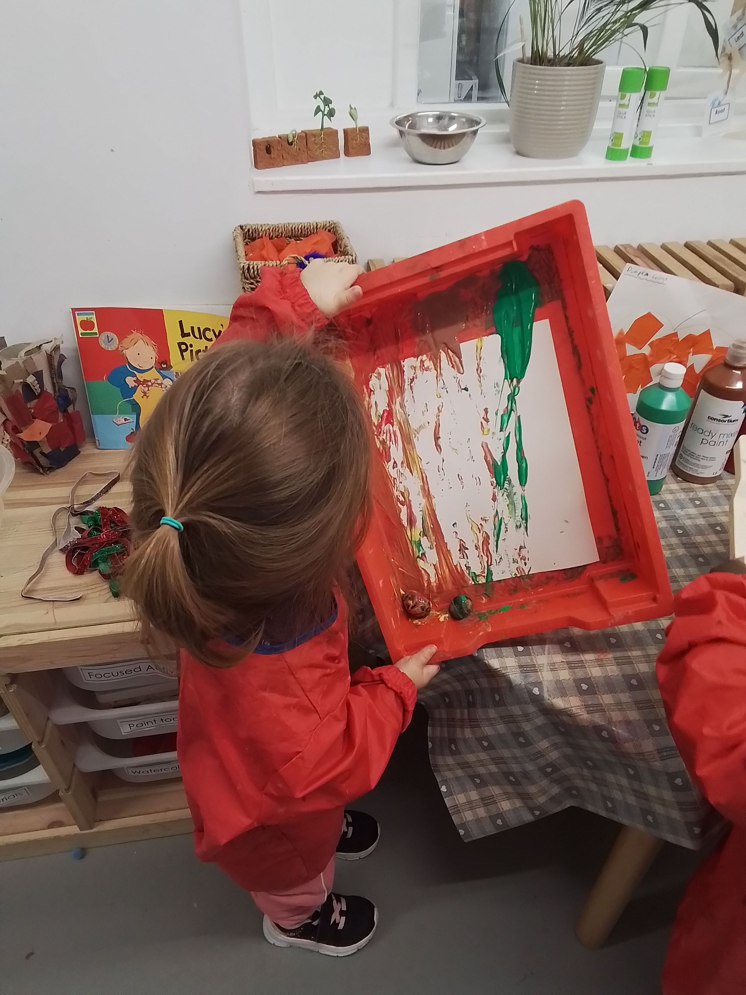 Babies This term a big focus in the baby room has been developing our vocabulary and language skills. We have been exploring many language rich activities such as nursery rhymes and puppets lots of themed story times and engaging group times. This term has been a very busy one the children have been exploring various activities based around the season autumn we have also been taking part in activities based around the recent and upcoming holidays such as the harvest festival Halloween and Diwali the festival of light. September brought around our latest parents evening at which we were delighted to discuss all of the learning and development we have observed here at nursery. The learning intention for next term will be to focus on personal social and emotional interactions here in our baby room. We will be looking at providing an enabling environment for the children to interact with each other as well as show their individuality. We will also be looking at the upcoming change of season as we will be shortly moving into winter as the colder months start to come closer and exploring the different experiences that brings. Toddlers This term, our toddlers have been busy exploring, learning, and having lots of fun through hands-on activities! They have loved spending time outdoors, observing the different shapes, colours, and textures of leaves, and going on bug hunts in the garden. We also had a great time rolling conkers and using them for painting, which helped the children explore colours, movement, and creativity. During circle time, we are reading “The Colour Monster” and talked about our feelings. The children shared how they were feeling and created their own monster drawings to represent different emotions, a wonderful way to support emotional awareness and expression. In our water play area, the toddlers explored role-playing “Pumpkin Soup”, mixing and pouring while pretending to make their own delicious creations. They also enjoyed making Autumn drinks, exploring different textures, smells, and flavours with warm spices, pretend fruit slices, and colourful leaves. These sensory experiences helped them develop language, imagination, and coordination. It’s been a wonderful term full of creativity, exploration, and discovery. We are so proud of all the children for their curiosity and enthusiasm, well done, toddlers! Preschool The Preschool children have been busy collecting the lovely, fresh tomatoes from our garden, they were so proud of their harvest! It was wonderful to see their excitement as they picked, counted, and talked about the colours and textures of the tomatoes. We have enjoyed some fantastic extra activities and experienced a variety of visitors coming in to share different learning experiences with the children. During our rugby session with the Giants, the children listened carefully to instructions, showed great teamwork, and practised their running and jumping with growing coordination. It was lovely to see how much their gross motor skills have developed and, of course, everyone had lots of fun finishing the session with the parachute games! Our French class continues to be a favourite, we often hear the children singing French songs throughout the day, such a joy to see how much they enjoy learning new words and melodies the words are on parent zone for you to join in at home. Please speak to a staff member if you would like to know the tune! We have also been exploring the beautiful autumn changes around us, looking closely at the colourful leaves, comparing their shapes and sizes, and having great fun with conkers, especially during our conker rolling activities (and taking some lovely pictures to share!). In our group discussions, we have been focusing on “All About Me”, inspired by the story Elmer. Through this story, we have been learning about our differences, individuality, and feelings. The children have shown wonderful curiosity and kindness as they shared what makes each of them unique. We also in circle time and focused activities explored about our teeth hygiene. Preschool have been learning why it is important to keep our teeth healthy through regular brushing of our teeth, visiting the dentist to keep our smiles healthy. We practiced brushing motions together and talked about what foods help keep our teeth strong. The children were very curious and loved showing how they brush at home and thoroughly enjoyed a visit from one of the babies daddies who is a dentist and kindly came to talk to the children about his job role and keeping our teeth healthy. The thoroughly children enjoyed dressing up and participating in some wonderful role play taking great delight exploring the play utensil props which ended with a lovely story time read by Hassan and a goodie bag to take home to carry on the good tooth brushing activities at home!